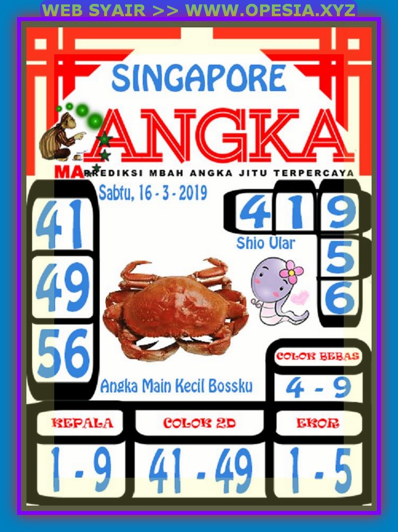 Kode Syair Singapore Sabtu 16 Maret 2019 GOsyair SEDIA KODE SYAIR SGP